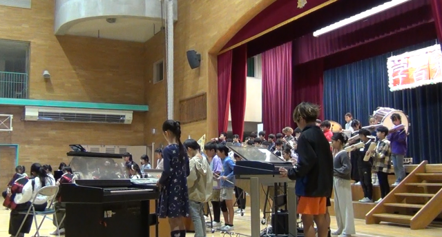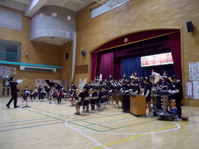 インフルエンザでお休みする児童が増えてきたため、お休みの児童が担当していた言葉を急遽別の児童が担当することもありましたが、練習の成果を発揮して友達同士でカバーし合う姿も見られました。写真は2,4,6年生の音楽発表の様子です。
