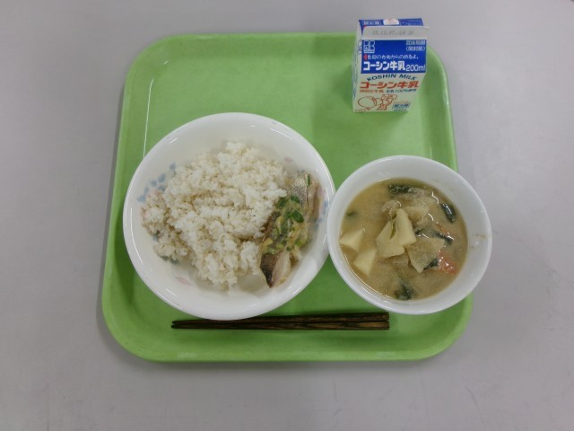【ごはん たらの三味焼き 利休汁 牛乳】でした。