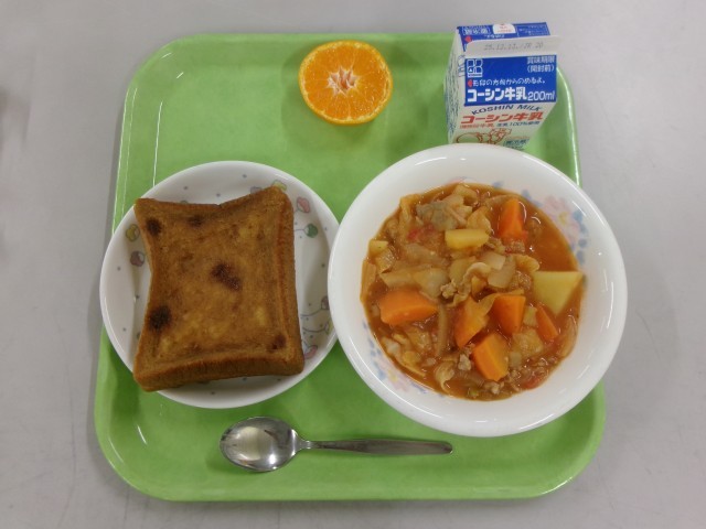 【ダブル黒糖ミルクトースト ボルシチ みかん 牛乳】でした。