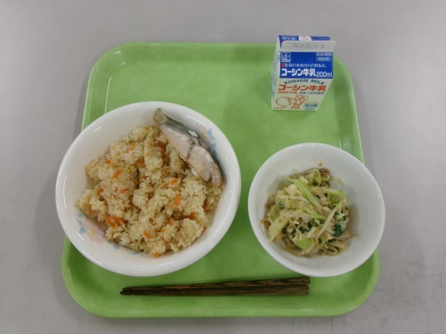 12月11日(木)の給食 公開日 2025/12/11 更新日 2025/12/11 給食献立 今日は<ふれあい農園会給食:にんじん>でした。献立は【板橋区産にんじんのごはん あじの塩焼き ごま和え 牛乳】でした。☆食材の産地☆ もやし:栃木県 青菜:埼玉県 キャベツ:愛知県 しょうが:高知県 鶏肉:宮崎県 あじ:ニュージーランド