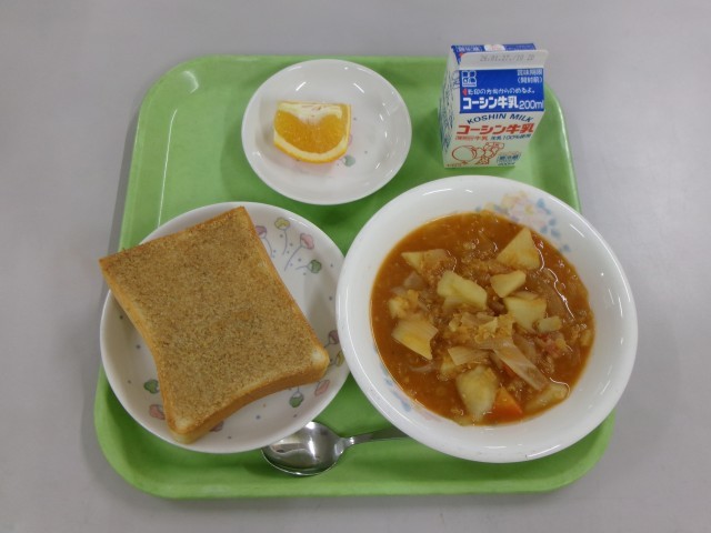 【セサミトースト レンズ豆のスープ いよかん 牛乳】でした。