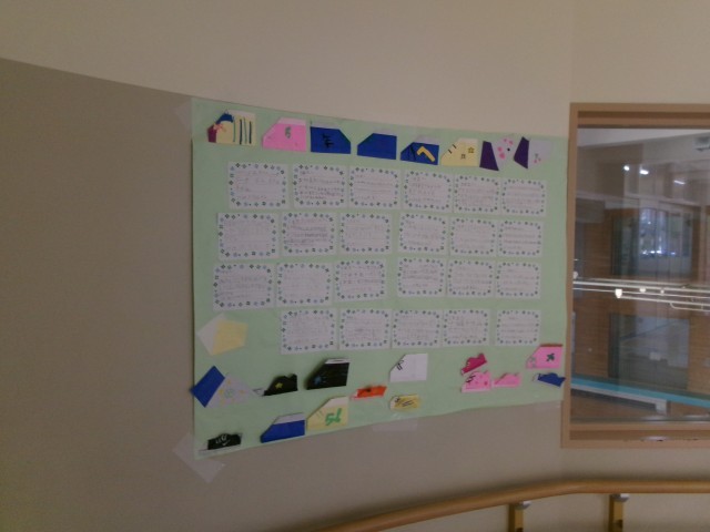 2年生と5年生は交流学年として、遊んでもらったり読み聞かせをしてもらったりしています。今回は作品展を通して交流を深めました。2年生は5年生の作品を見て、すごいと思ったことや、いいなと思った工夫を手紙に書いて伝えました。また、5年生からも手紙をもらい、学年を超えた関わりの中で互いに学び合う大切さを感じました。