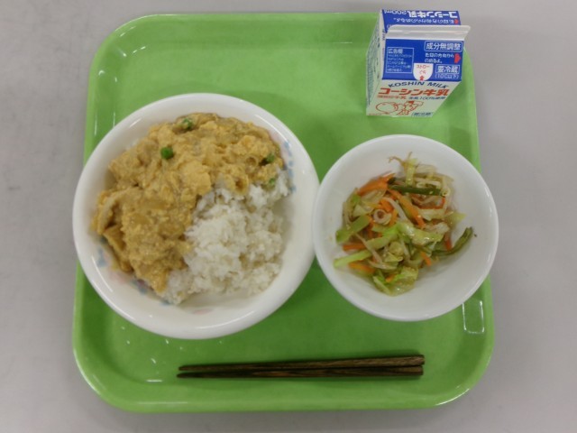 【あぶたま丼 茎わかめサラダ 牛乳】でした。