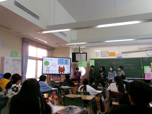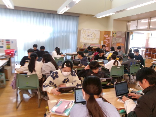 まとめの学習では、今まで学習したことを使ったり、調べたりしてスライドにまとめ、発表する活動を行っています。