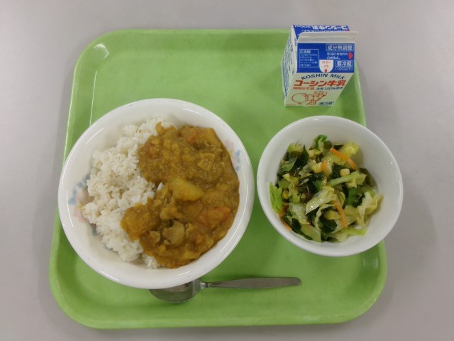 【レンズ豆のカレー 海藻サラダ 牛乳】でした。