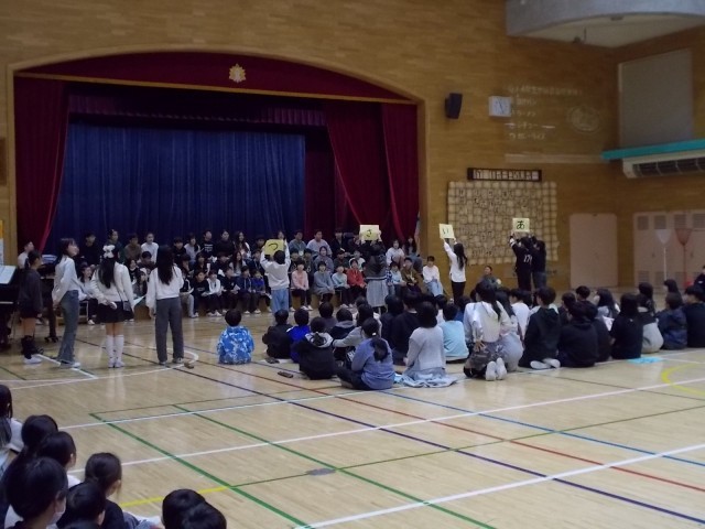 今日は6年生を送る会が行われました。これまで頑張って学校の中心として様々な場面で活動してくれた6年生。この日は、在校生からの祝福や励ましに嬉しそうな表情が印象的でした。各学年の出し物では、どの学年も趣向を凝らして発表していて、これまで各学年で話し合ったり、練習したりしてきた様子が伝わってきました。6年生からは、合唱のプレゼントがありました。司会進行の代表委員のみなさんもよく頑張りました。