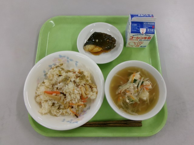3月3日(火)の給食 公開日 2026/03/05 更新日 2026/03/03 給食献立 今日の献立は【春のちらしずし 銀だらの香り焼き すまし汁 牛乳】でした。☆食材の産地☆ にんにく:青森県 青菜:群馬県 えのきたけ:長野県 れんこん:茨城県 長ねぎ:千葉県 にんじん:千葉県 大根:千葉県 ふき:愛知県 しょうが:高知県 鶏肉:宮崎県