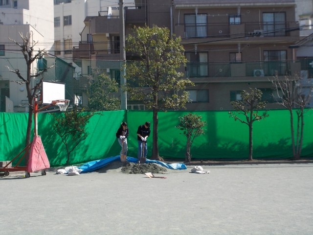 卒業を控え、今までお世話になった学校への奉仕活動ということで、6年生が主事さんの仕事を手伝う様子が見られました。