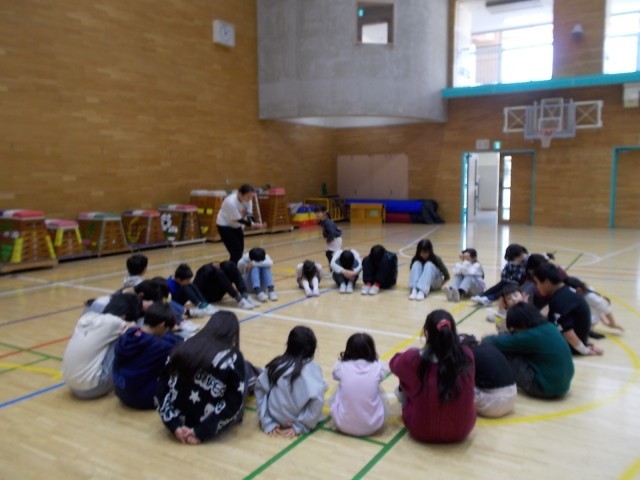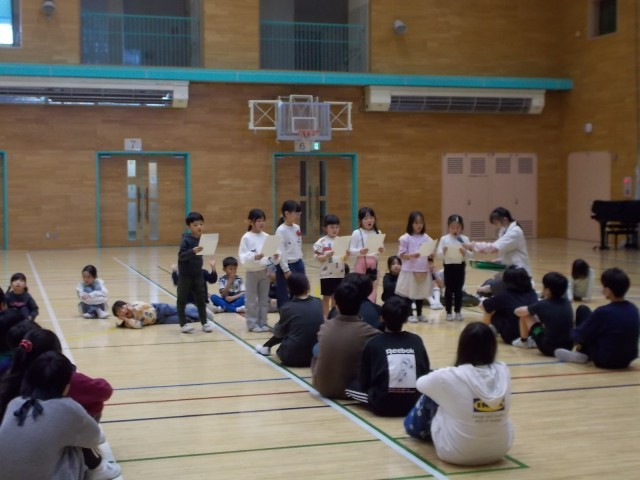 また、6年生と1年生で交流会がありました。じゃんけん列車やハンカチ落としなど、1年生を気遣って遊ぶ6年生の様子も見られ、とても微笑ましかったです。
