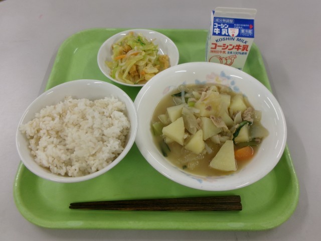 【ごはん 塩肉じゃが カリカリ油揚げのサラダ 牛乳】でした。