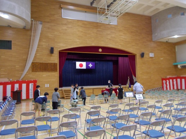 新6年生が登校して、明日の入学式の準備を行いました。