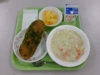 【かけカレーなんばん みそポテト りんご 牛乳】です。