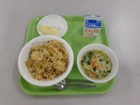 6月17日(月)の給食 公開日 2024/06/19 更新日 2024/06/19 給食献立 【ごはん ひじきふりかけ さわらの醤油麹揚げ 味噌汁 牛乳】です。 今日は、さわらの醤油麹焼きの予定でしたが、オーブンの不調により焼くことができず、調理法を変更しました。 ☆食材の産地☆ 米:千葉県 米粒麦:福井県 さわら:韓国 にんじん:千葉県 大根:青森県 玉ねぎ:香川県 えのきたけ:長野県 青菜:埼玉県