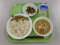 【✾ゆかりとわかめのごはん ししゃものピリ辛焼き 塩肉じゃが 牛乳】です。