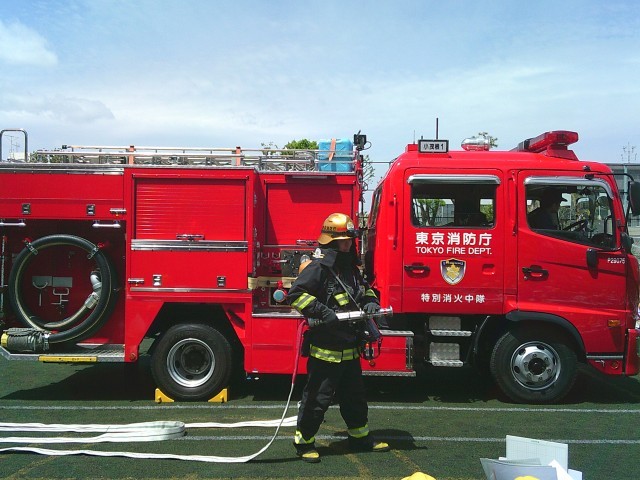4月22日に消防写生会がありました。消防士の方が、はしごをかけたり、サイレンを鳴...