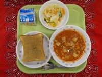 ・牛乳 ・コーンライス ・タンドリーチキン ・マカロニスープ タンドリーチキンは...
