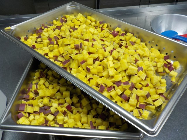 さつま芋が崩れないように、調理員さんが丁寧に混ぜてくれました。