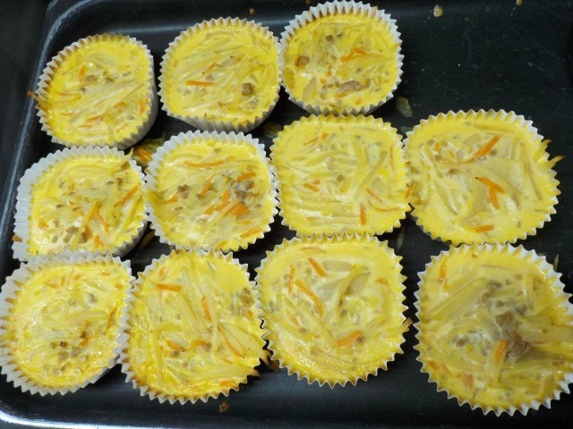 和風卵焼きは具に、炒めた豚挽き肉・玉葱・人参・じゃが芋が入っています。