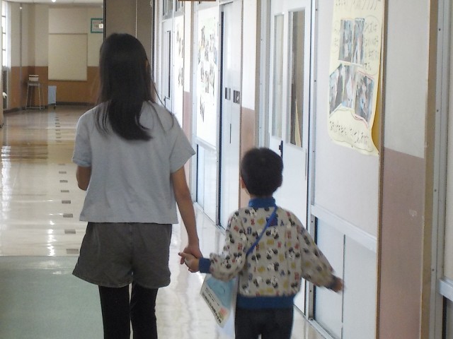 6日(木)の就学時健診では、5年生が新1年生のサポートの仕事をしました。新1年生は、来年度6年生になったときのペア学年です。当日は、新1年生を連れて視力検査や聴力検査に行き、発達検査前の待合室では絵本を読み聞かせしました。何かを説明するときは小さくしゃがんで顔の高さを揃えたり、手をつないで校内を案内したりする姿はとても頼もしく、微笑ましかったです。