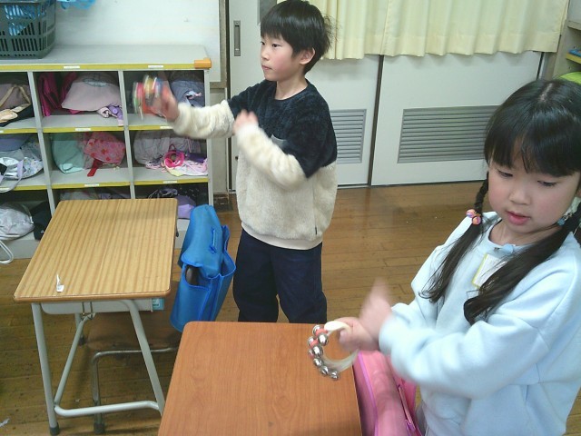 すずやタンブリン、カスタネットなどいろいろな楽器を使って、みんなで合奏する楽しさを味わっています。