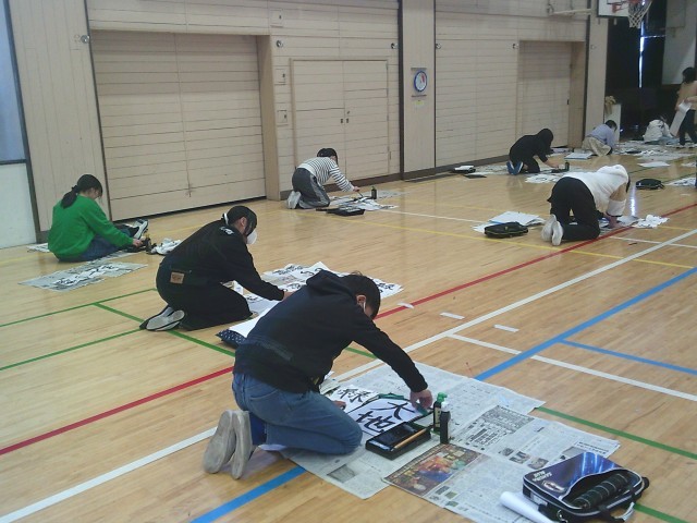 体育館で6年生の席書会を行いました。