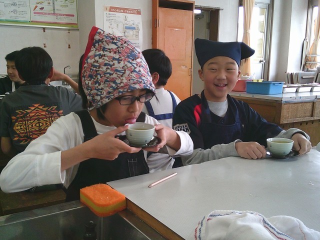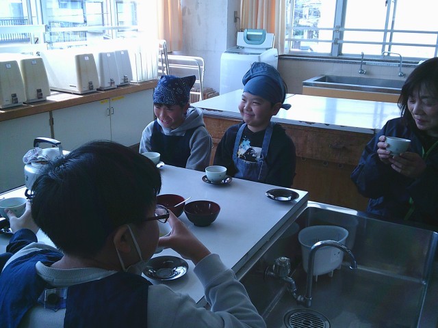5年生は、家庭科の最後に「お茶の入れ方」を学び、お茶で「ほっと一息」の時間をとりました。