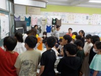 「今日はプールに入れます。」と言うと、「やったあ。」と子供たちから歓声が上がります。教室での着替え、プールサイドへの移動、挨拶、人数確認、準備運動、シャワーまで、始めは時間がかかっていた1年生ですが、回を重ねるごとにスムーズにできるようになりました。「たからさがし」では、頭まで潜って宝を取れる子も増えてきました。にっこり支援本部の方に見守っていただき、安全に気を付けてプール学習に楽しんで取り組んでいます。