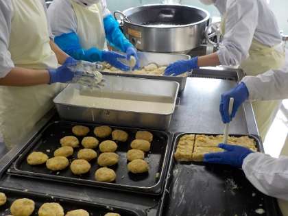 調理員さんが、しっかり準備をして丁寧に作ってくれたので、こんがりきつね色の美味しいコロッケが出来ました。