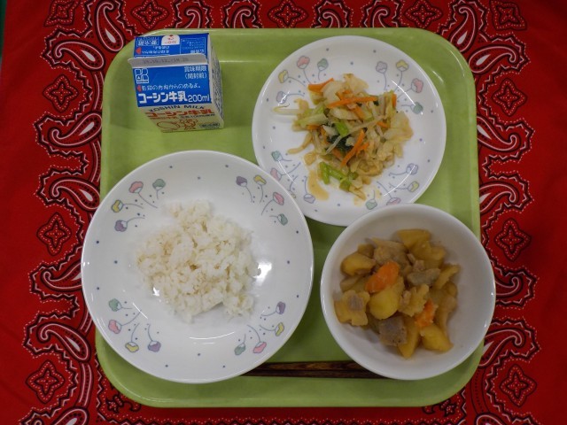 ・牛乳 ・ごはん ・豚肉とじゃが芋...