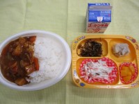 「タラのカラフル野菜あん」は、玉ねぎ、にんじん、ピーマンの入ったあんかけを揚げたタラにたっぷりかかっていました。ピーマンは苦みがないように調理してあり、苦手な児童も食べやすかった様子でした。