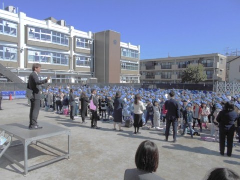 まずは、進級した在校生たちが元気に登校。 着任式では新しくお迎えした先生方の紹介があり、続く始業式では、晴れ渡る青空に校歌を響かせました。一つ学年が上がり、少し大人びた表情を見せる子どもたち。新しいクラス、新しい担任の先生との出会いに、校舎内は期待に満ちた明るい活気に包まれていました。