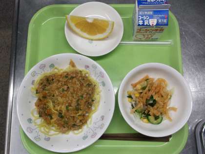 6月1日(水) 公開日 2022/06/07 更新日 2022/06/07 給食献立 ジャージャン麺、カリパリサラダ、美生柑 カリパリサラダは、ワンタンの皮を細く切ったものを油で揚げてトッピングしたサラダです。野菜のパリパリした食感と、ワンタンの皮のカリカリした食感が合わさり、おいしく食感も楽しいサラダです。