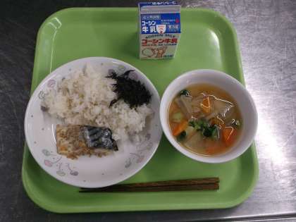 6月2日(木) 公開日 2022/06/07 更新日 2022/06/07 給食献立 ごはん、ひじきのふりかけ、サバの風味焼き、みそしる 給食のみそしるは、具材がたくさん入っていることが多いです。具材がたくさん入ると、よくかんで食べるので満足感がでます。また、食材のうまみがたくさん出るので、とてもおいしいです。