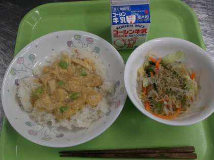 あぶたま丼とは、油揚げの入ったたまご丼です。油揚げに味が良くしみこんでいるので、かむとじゅわっと口のなかにうまみがひろがります。こどもたちもよく食べていました。