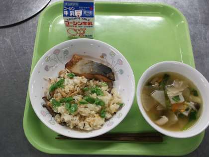 6月14日(火) 公開日 2022/06/23 更新日 2022/06/23 給食献立 いなり寿司風まぜごはん、ますのごま味噌焼き、けんちん汁 いなり寿司風まぜごはんは、名前の通り、いなり寿司を包まず混ぜご飯にしたものです。酢飯に、刻んだ油揚げを甘辛く炊いて混ぜ込みました。