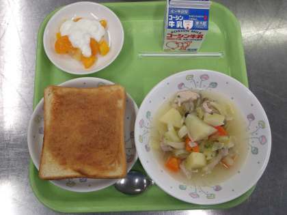 きなこトースト、さっぱりポトフ、フルーツヨーグルトかけ