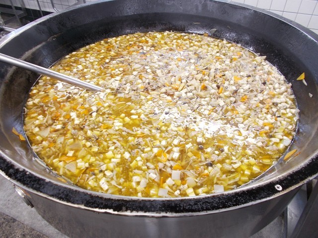 秋が旬のきのこを入れた汁物です。今日はしめじ、まいたけ、干し椎茸の3種類のきのこが入っています。きのこには食物繊維が多く含まれていて、お腹の調子を整えてくれます。苦手な人も一口は食べてみましょう!