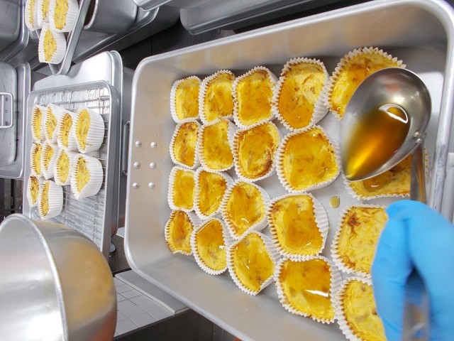 鶏ひき肉、玉ねぎ、にんじん、じゃがいもが入った卵焼きを焼いて、その上からとろみのついたあんをかけた料理です。あんは醤油、砂糖、酢、だし汁、でんぷんを使って手作りしました。やわらかめの卵焼きと甘酸っぱいあんが合わさって、とってもおいしいです!