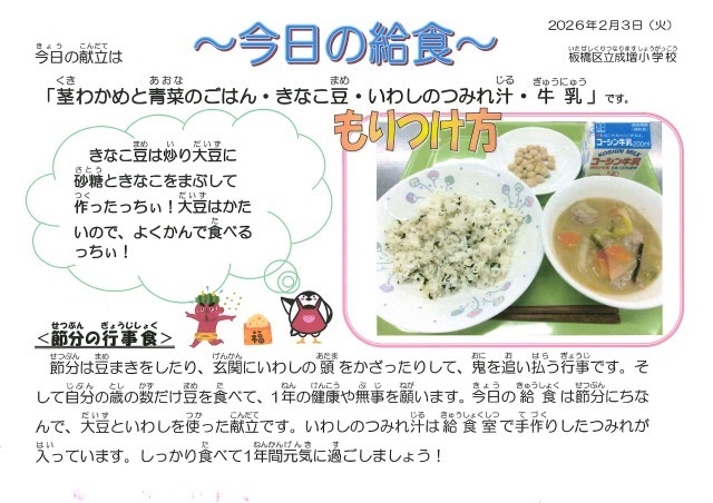 2/9( 月 ) 令和8年2月3日(火)の給食