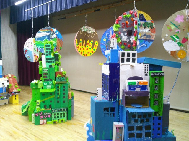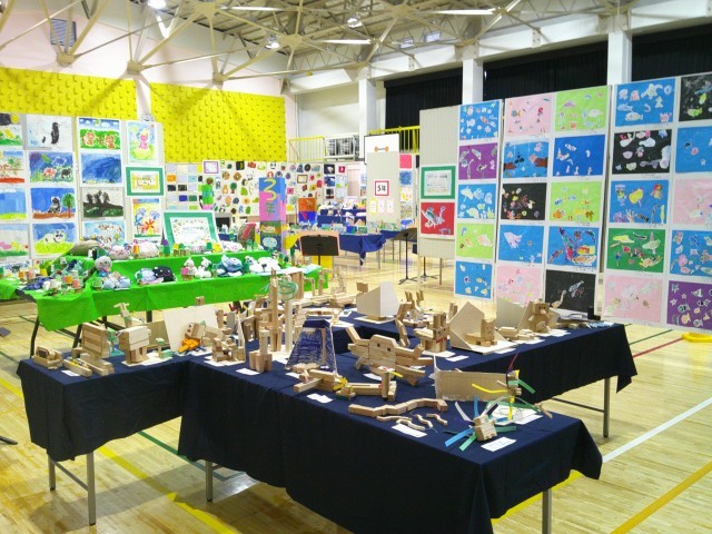 児童が頑張って制作した集大成が、所狭しと並んでいます。