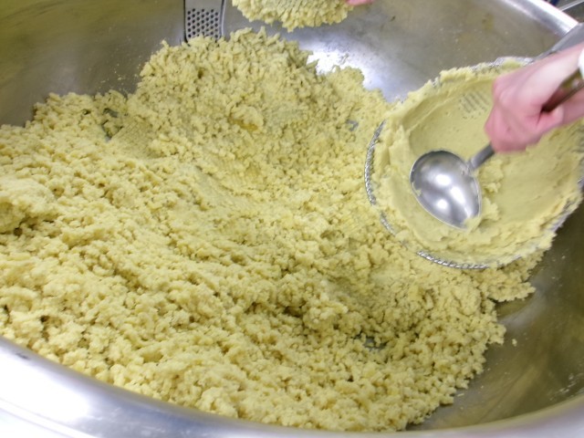 八百屋さんに納品してもらったさつまいもがとてもあまくておいしかったので、砂糖を予定の半分の量しか使いませんでした。なめらかであまくておいしいスイートポテトができました。クラスからは「ひとり2個食べたい!」と声がかかるほどでした。