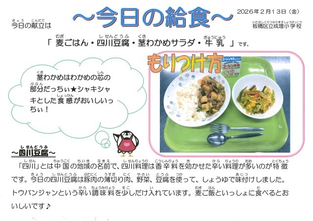 令和8年2月13日(金)の給食