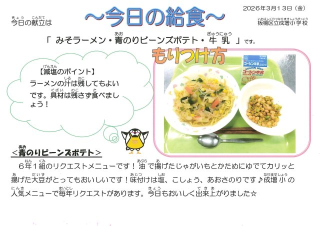 3/13( 金 ) 令和8年3月12日(木)の給食