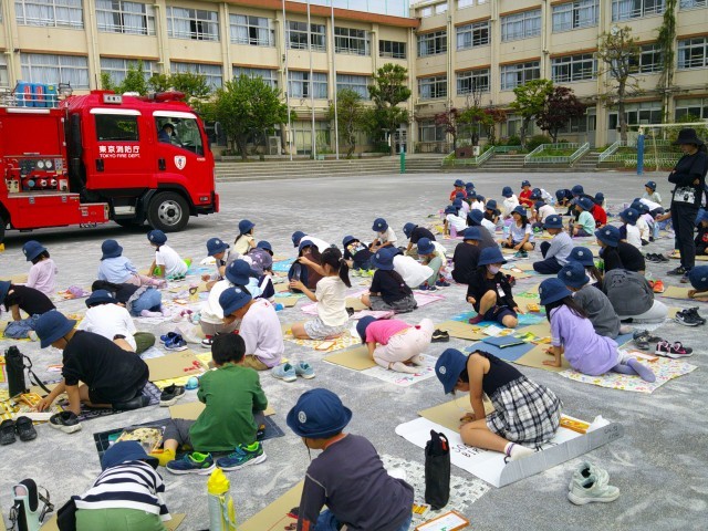 志村消防署成増出張所の方々、並びに、消防団の方々のご協力をいただき、「消防写生会」を行いました。