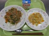 今日の給食は「ごはん・ホイコーロー・中華風卵スープ・牛乳」です。 <ホイコーロー...