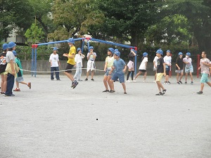 新町タイム 4〜6年生 公開日 2023/09/08 更新日 2023/09/08 できごと 9月6日(水)に新町タイムが、行われました。体育館でボールを使って的当てをしたり、校庭で長縄を使って順番に跳んだりしました。