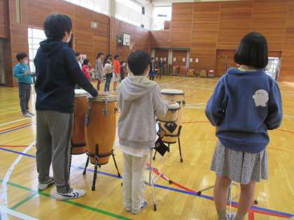今まで使ったことのないおもしろい打楽器もあって、持ってみるとすぐに音を出して演奏したくなりました。最後のセッションでは、みんなの気持ちがひとつ!になりました。