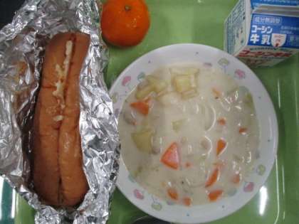 牛乳 ナチョスドッグ キャベツのクリーム煮 冷凍みかん