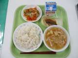 牛乳 ひじきごはん いかの照り焼き けんちん汁