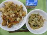 牛乳 麦ごはん 家常豆腐 野菜の中華風